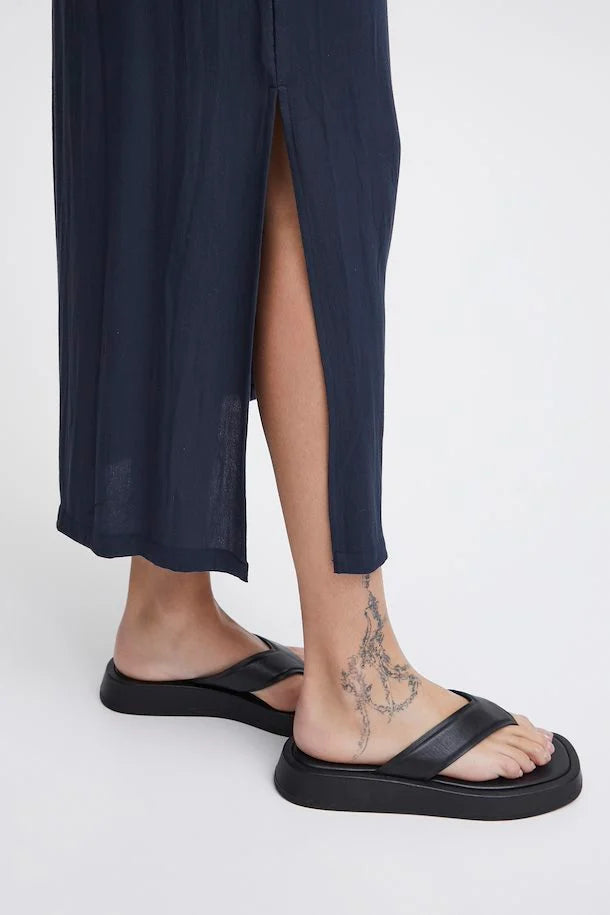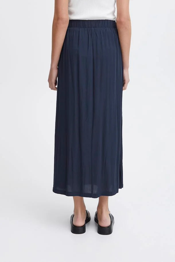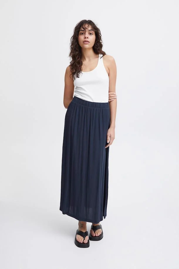 The Marrakech Ankle Skirt is a versatile addition to your wardrobe. Made with a light and floaty material, this ankle-length skirt features an elasticated waist and two side slits for added movement.
