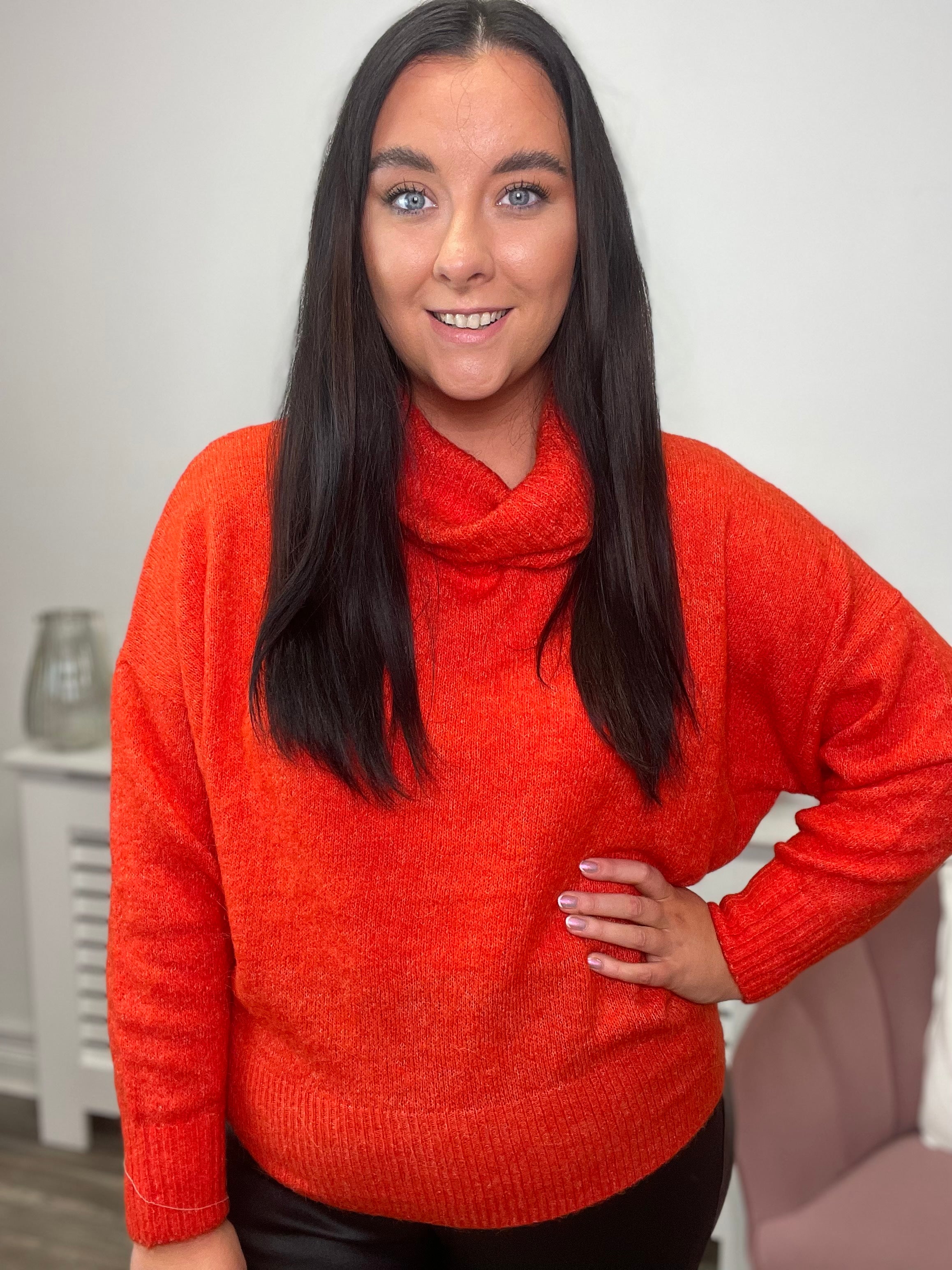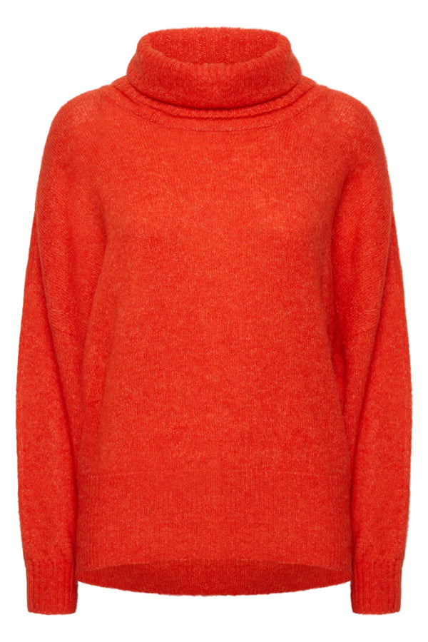 This fabulous long-sleeved, high neck knit jumper features a light knit with a cuffed sleeve in a stretchable fabric. A timeless piece you will wear over and over again!