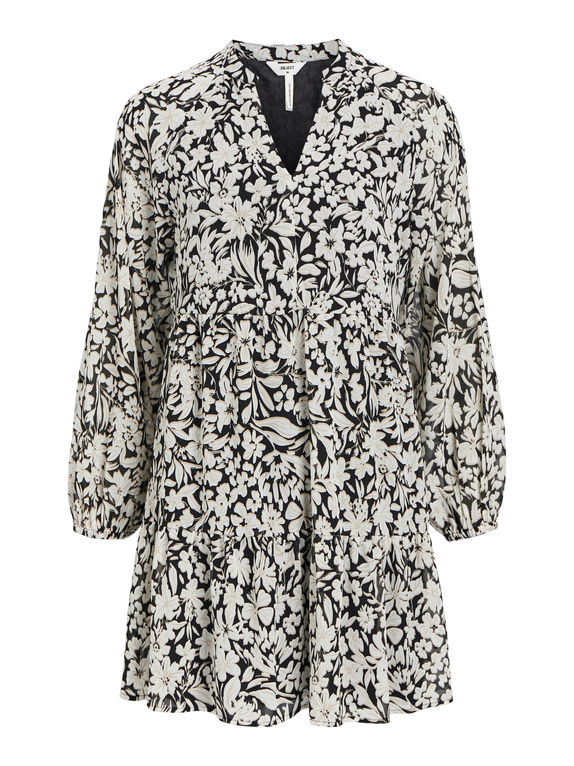 The MILA Smock Dress is designed to fit and flatter. It features a v neckline and long balloon sleeves with elasticised cuffs. The smock style and tiered hemline falling at the knee add a beautiful silhouette.