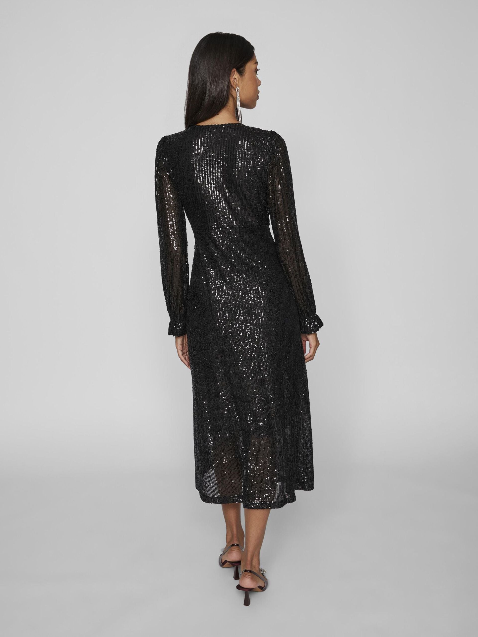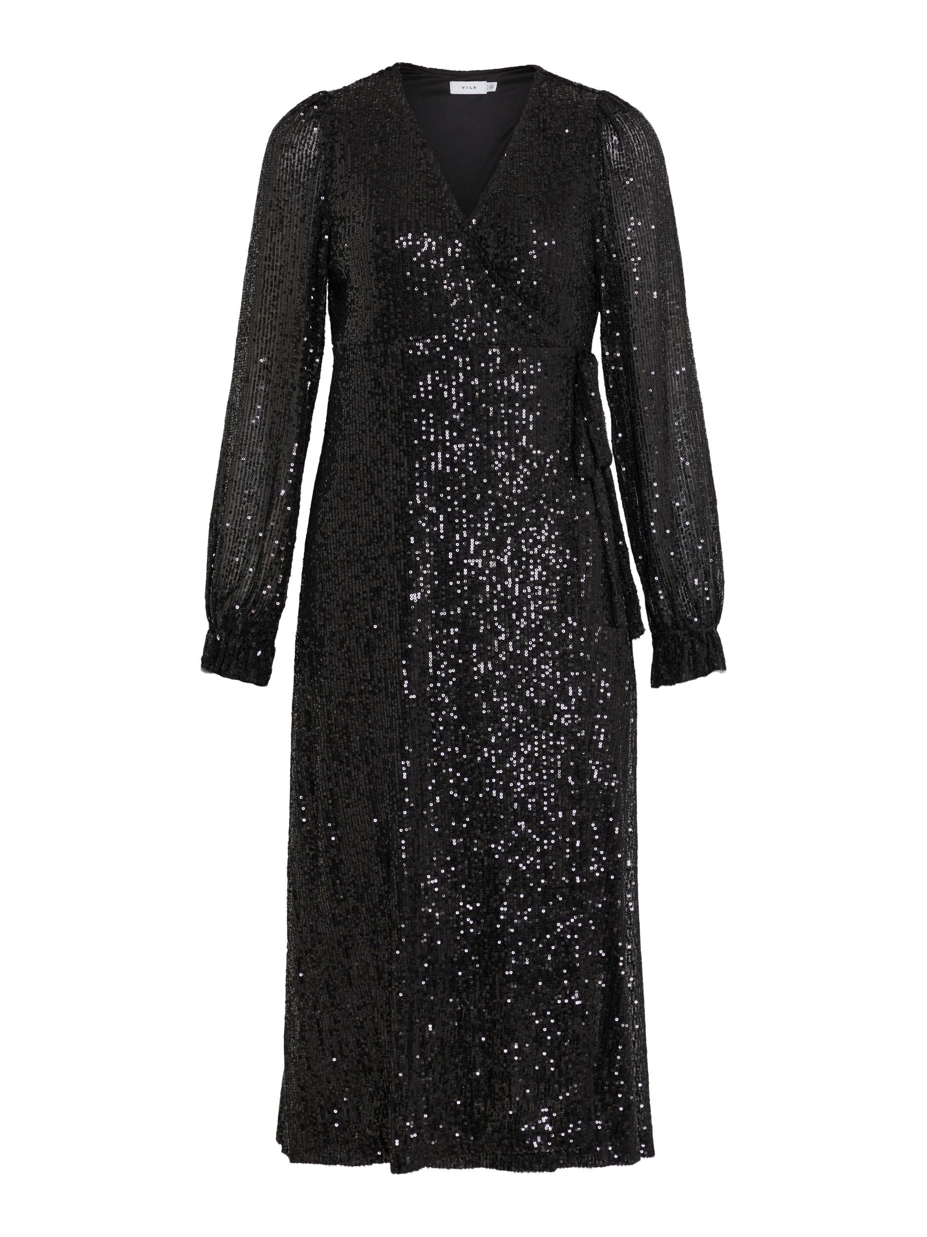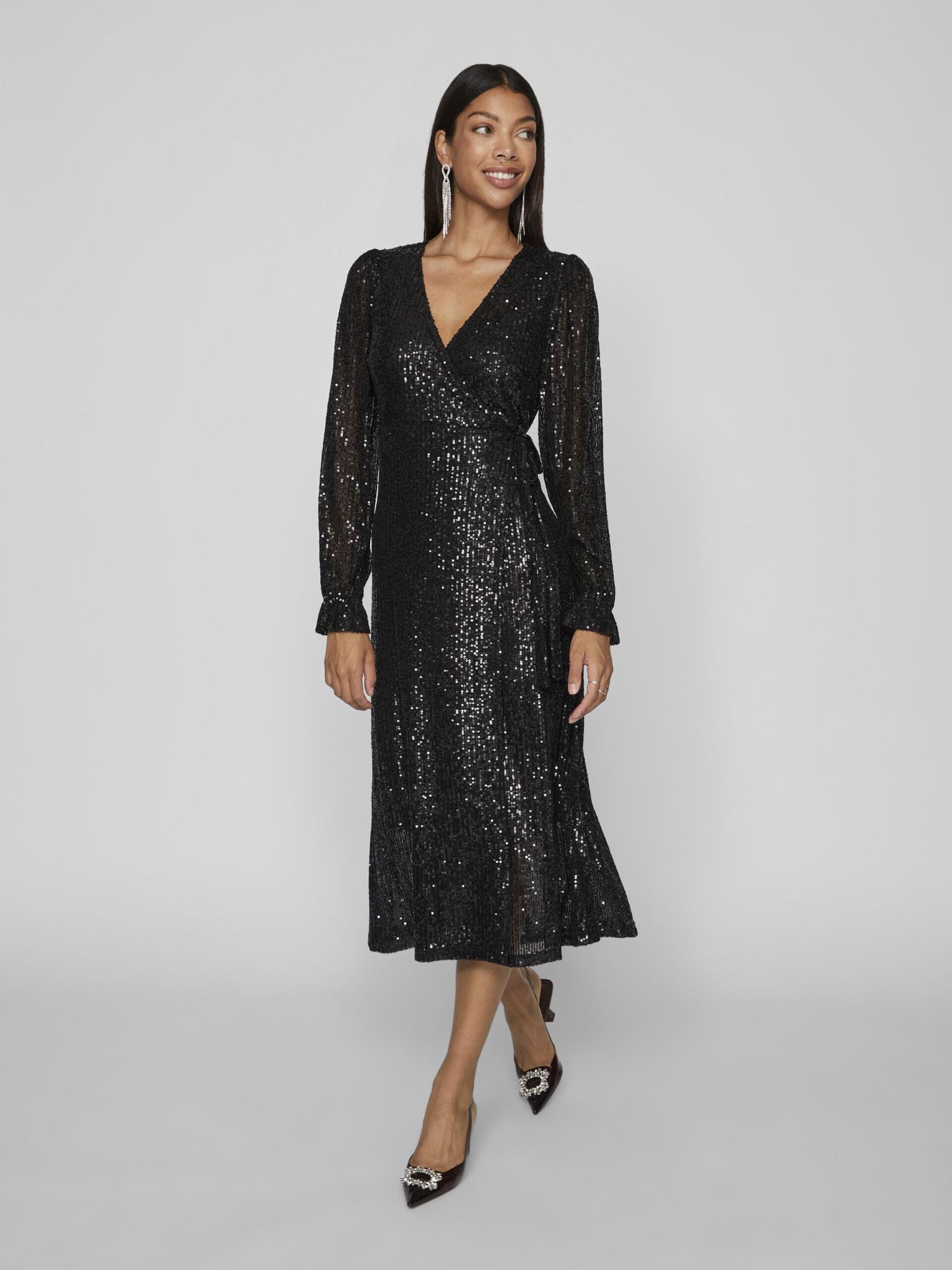 MIRA SEQUIN MIDI WRAP DRESS (BLACK)