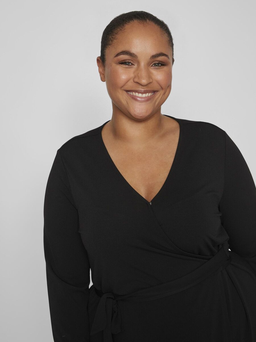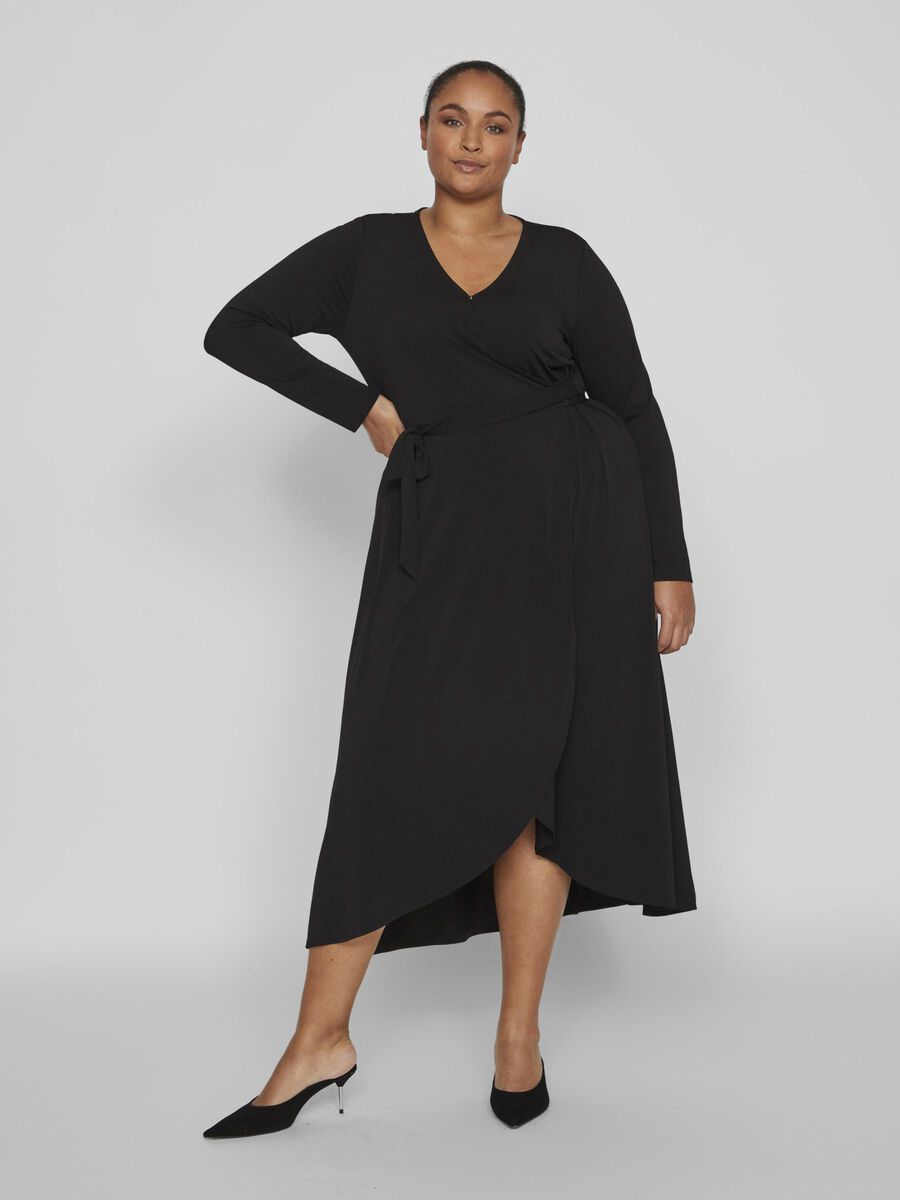 The Vila Evoked NANCY Midi Wrap Dress is specifically designed for those with curvier figures. With long sleeves and a chest clasp, it offers a secure and comfortable fit. Made from soft and stretchy fabric, this dress boasts a faux wrap design, midi length, and a flattering v-neck. It's the perfect choice for all-day wear.