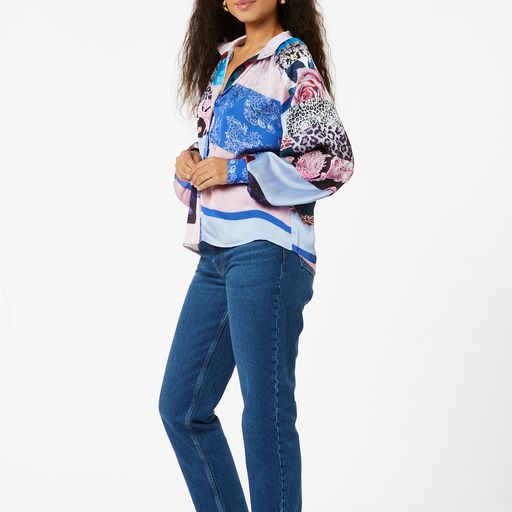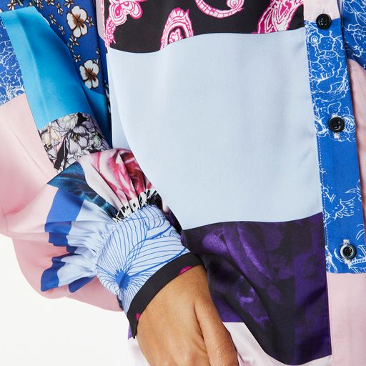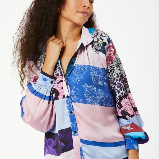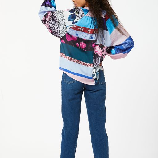 This elegant satin blouse with high neck, long balloon sleeves, button closure and cuffs. Feminine and chic with delicate finishes: this blouse is elegant in its simplicity! We like to pair it with heeled ankle boots in winter.