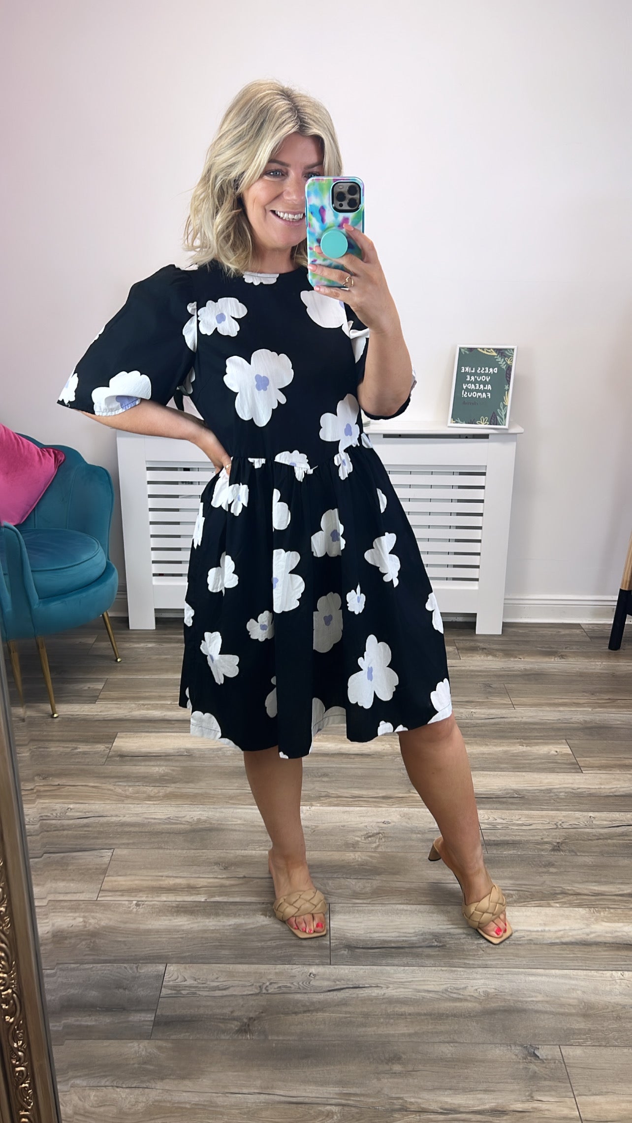 We adore this smock dress! Featuring 2/4 length sleeves, round neckline and cut waistline all in a fabulous floral print! Pair with our Bellamy Denim Jacket and Jane Woden Runners for a cute look.