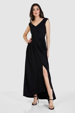 Reese High-Low Pleated Maxi Dress (Black)