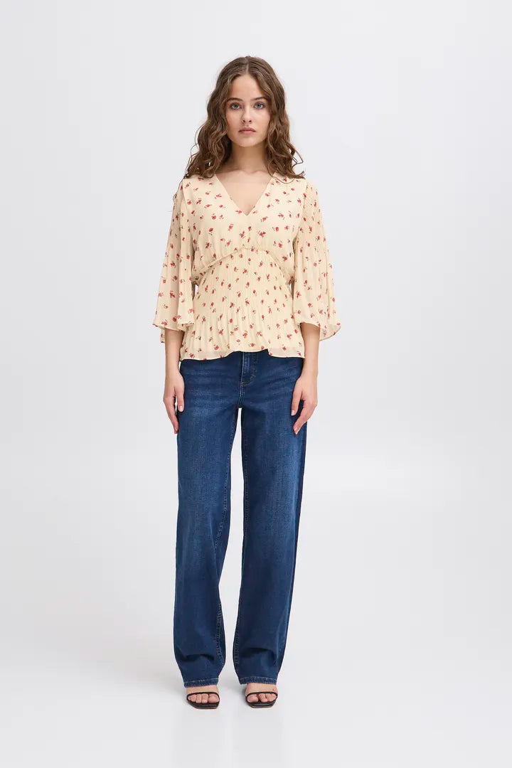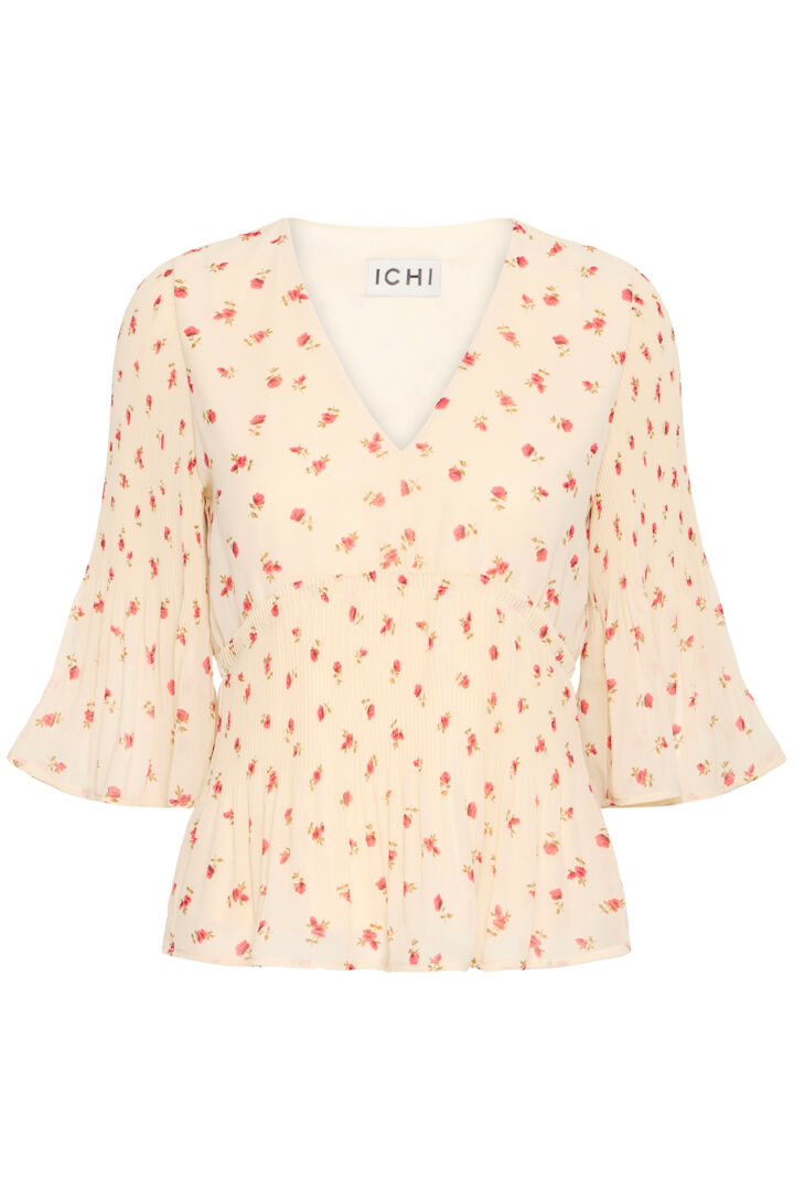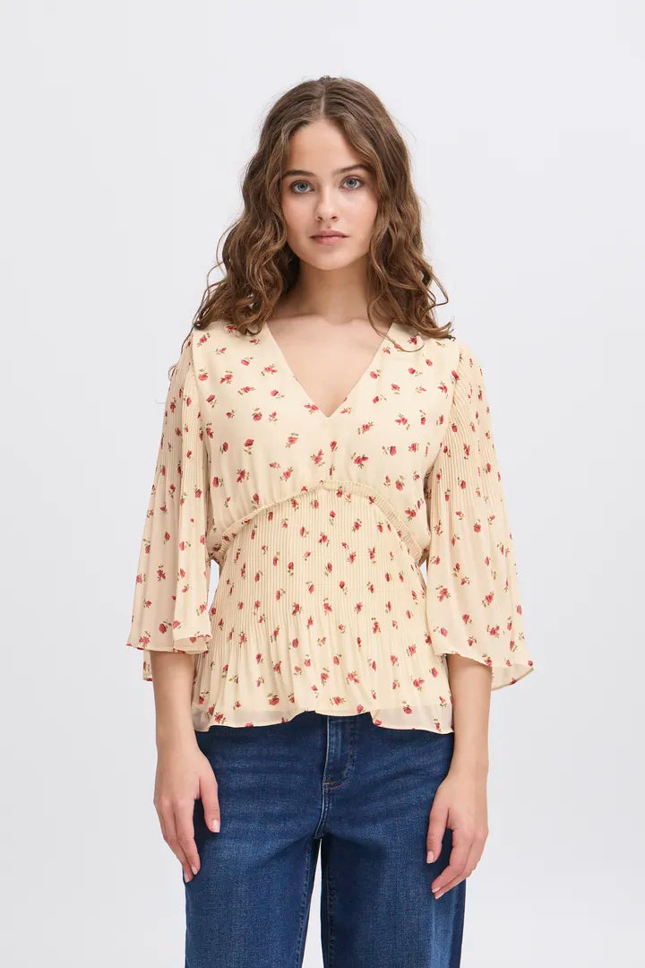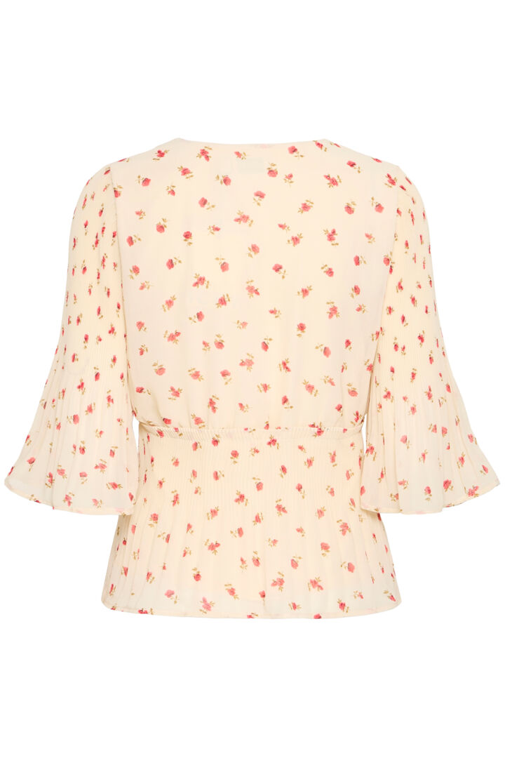 Rose is a pretty floral top with a V-neck and 3/4 length flutter sleeves. Featuring a delicate red rose print, pleating and bias cut creating a floaty flattering style.