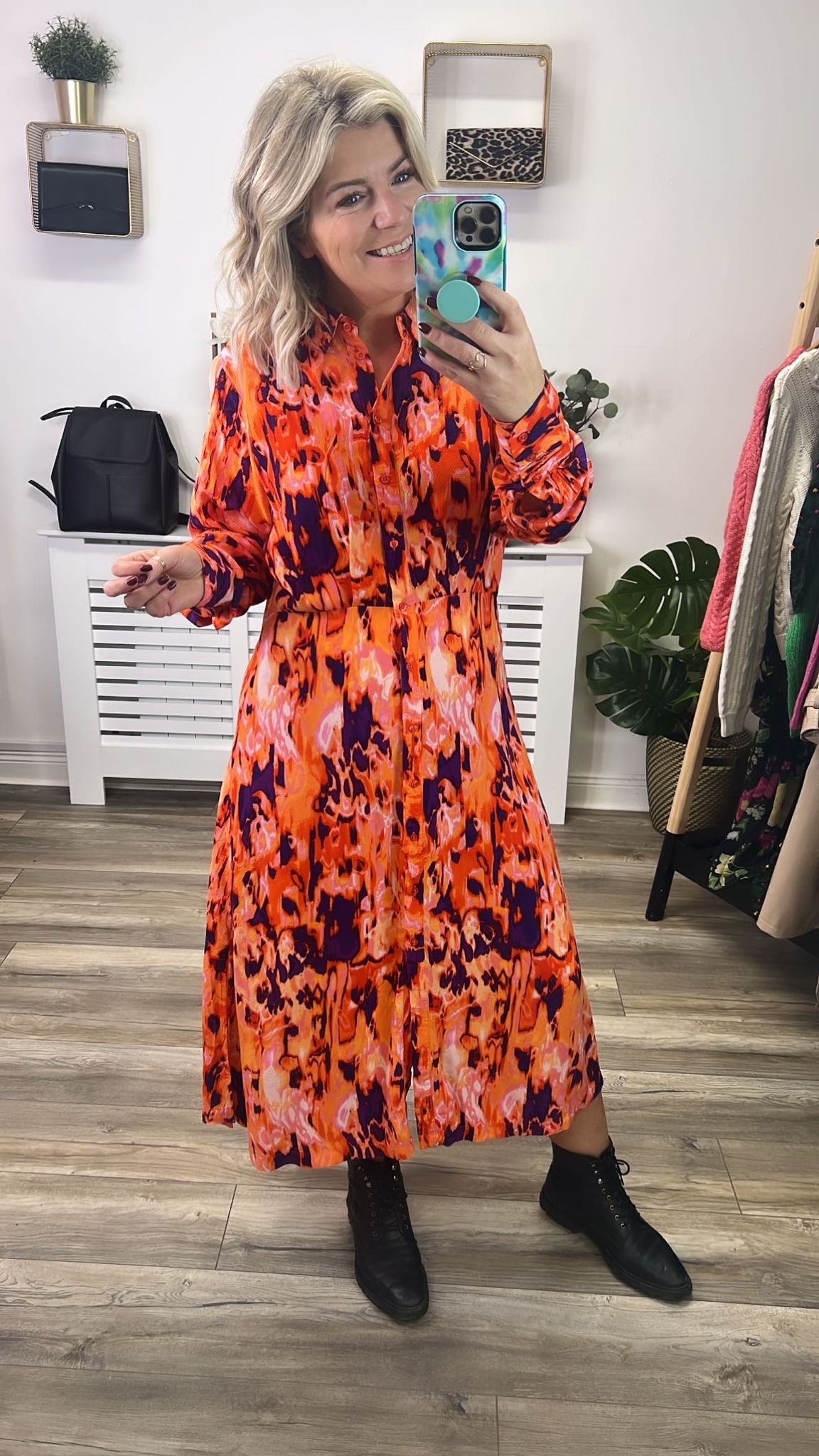 We are weak for the print of this Shirt Dress by Ichi. Featuring a long sleeve, full button up front. Style with our Hanley Faux Leather Jacket and a boot to finish the look.