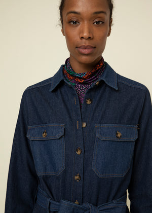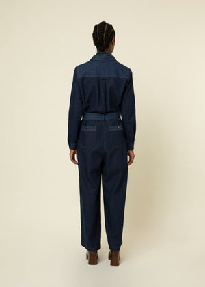 Elevate your wardrobe this season and do it in denim! Made from a strong cotton denim, this jumpsuit from FRNCH is designed for a loose fit with patch pockets on the chest and features a tie waist belt.