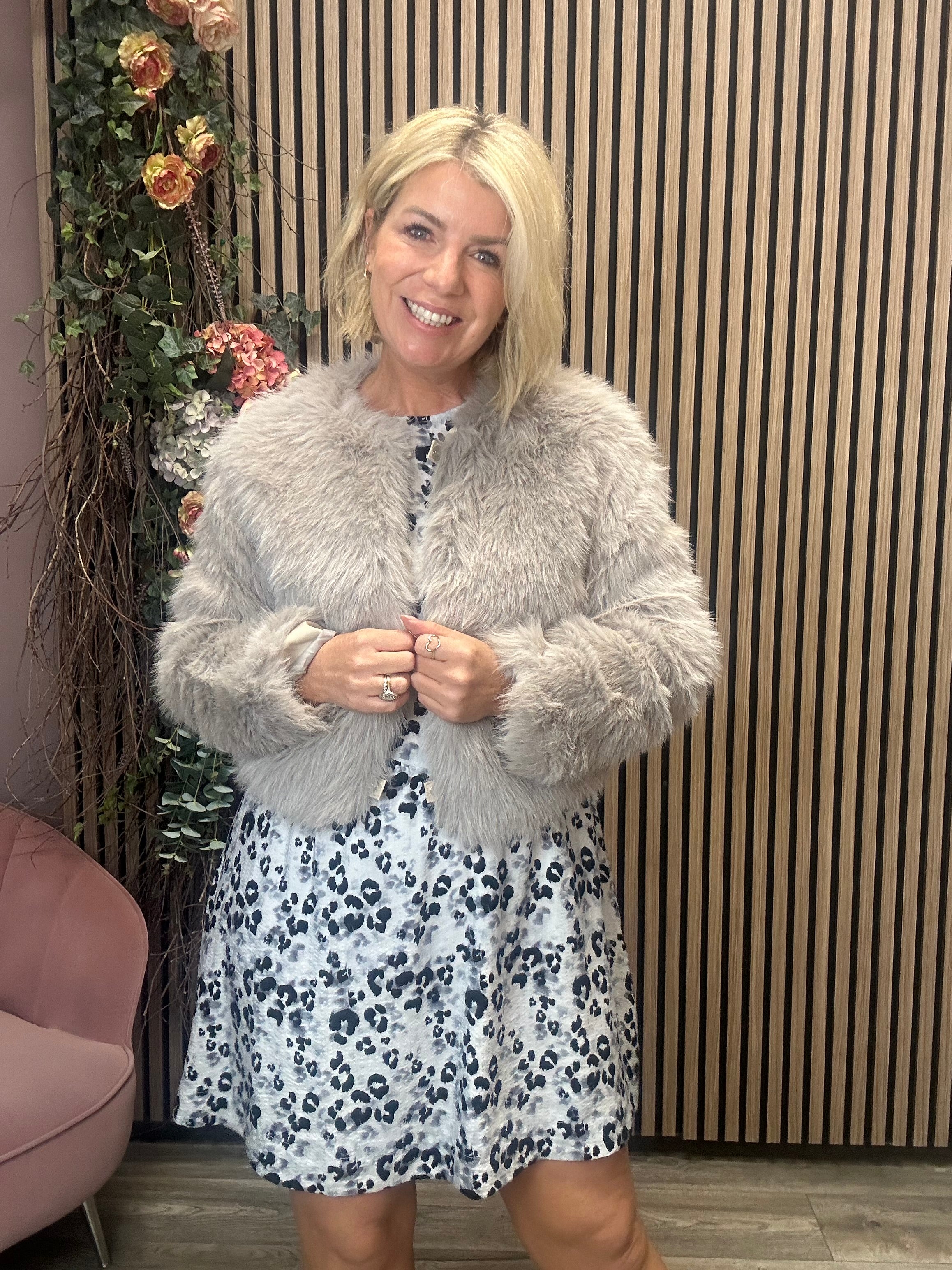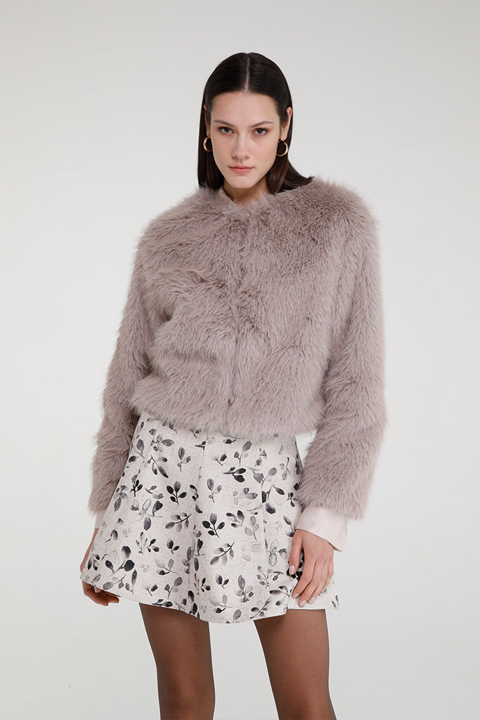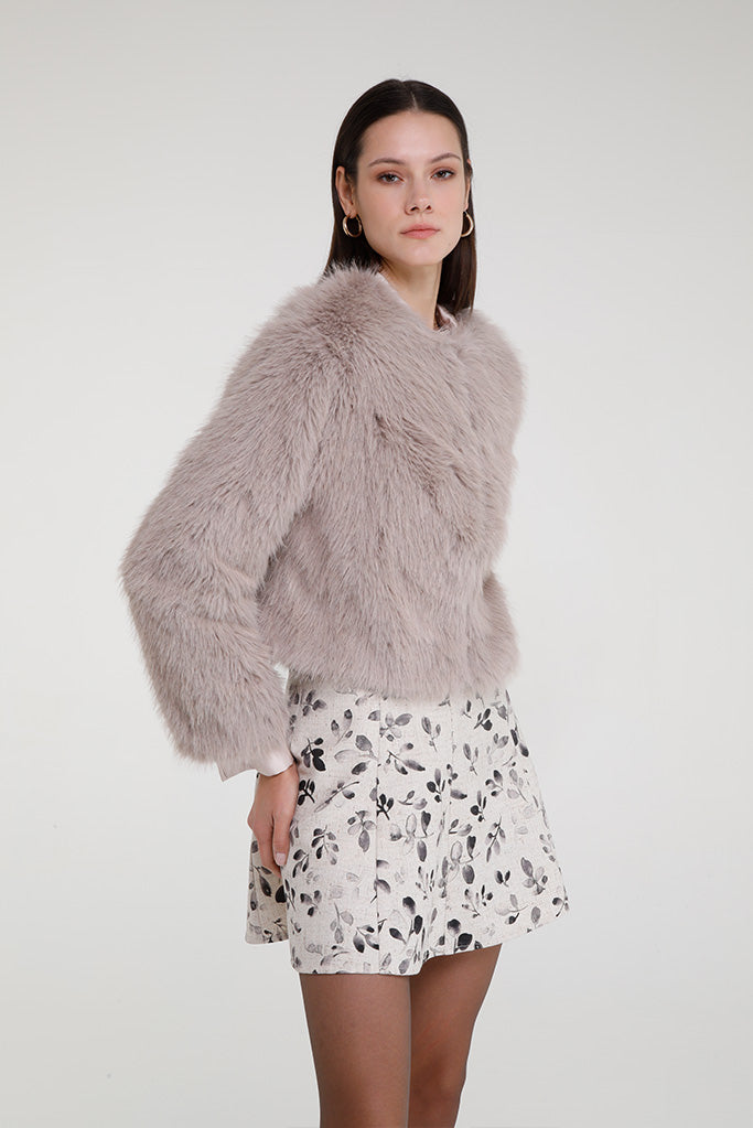 The Shuanna jacket is a faux fur short style jacket that is high in style points! It's cream faux leather trims, full lining and push button closure elevate this must have statement piece.