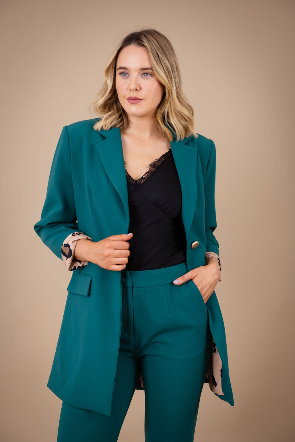 Designed by Maeve with practicality and style in mind this longline blazer coat can be worn over dresses or with the matching Grainne trousers. Featuring the signature Oh Molly print on the inner lining. The Síle blazer coat can be incorporated into any wardrobe. Shop the entire Oh Molly Collection.