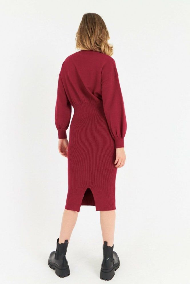 A sustainable dress that will become a classic. The blend of recycled artemisia (polyester fibres) and viscose makes for the comfiest fit. Featuring a bibbed skirt and puff sleeves with a round neck and little split at back skirt. A classic to wear as loungewear or to go out with heels and boots.