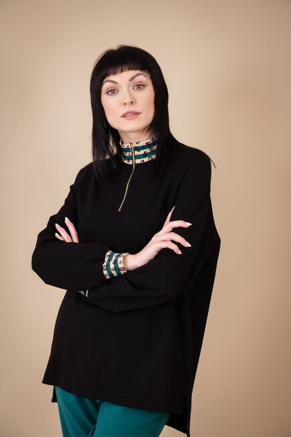This zip collar sweater can be mixed and matched with the entire oh molly collection featuring the dipped hemline at the back and the signature Oh Molly cuff and collar. A versatile piece that can be worn as a set with the Sorcha smart track pants or with jeans. Shop the entire Oh Molly collection here.