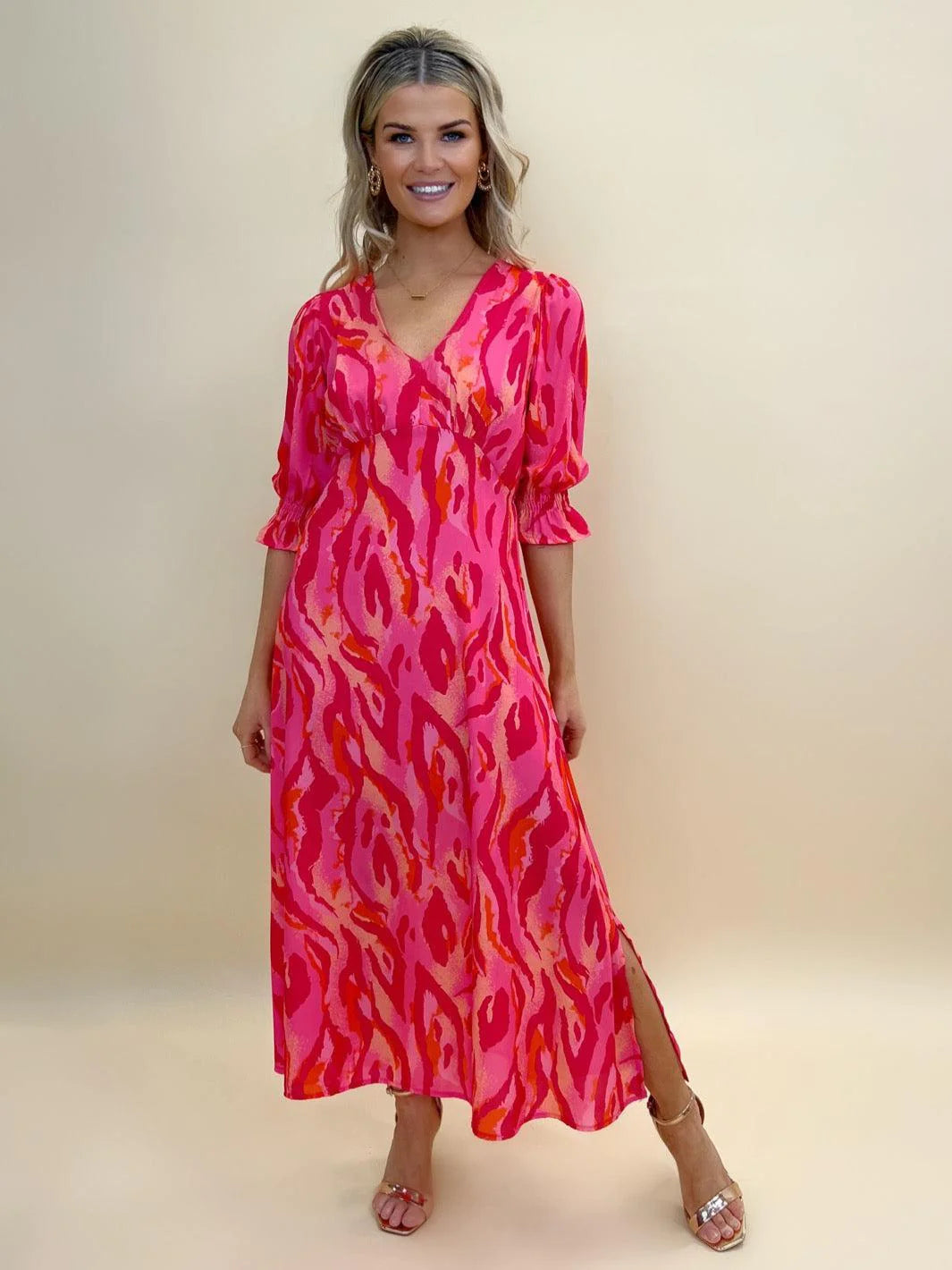 The newest addition to the Kate & Pippa collection, our Streasa dress is a must have for your wardrobe. A loose fit with a v neck make this dress a perfect figure flattering style, with a slit on the side for additional detail. Paired beautifully with heels for an occasion or boots for a more casual look.