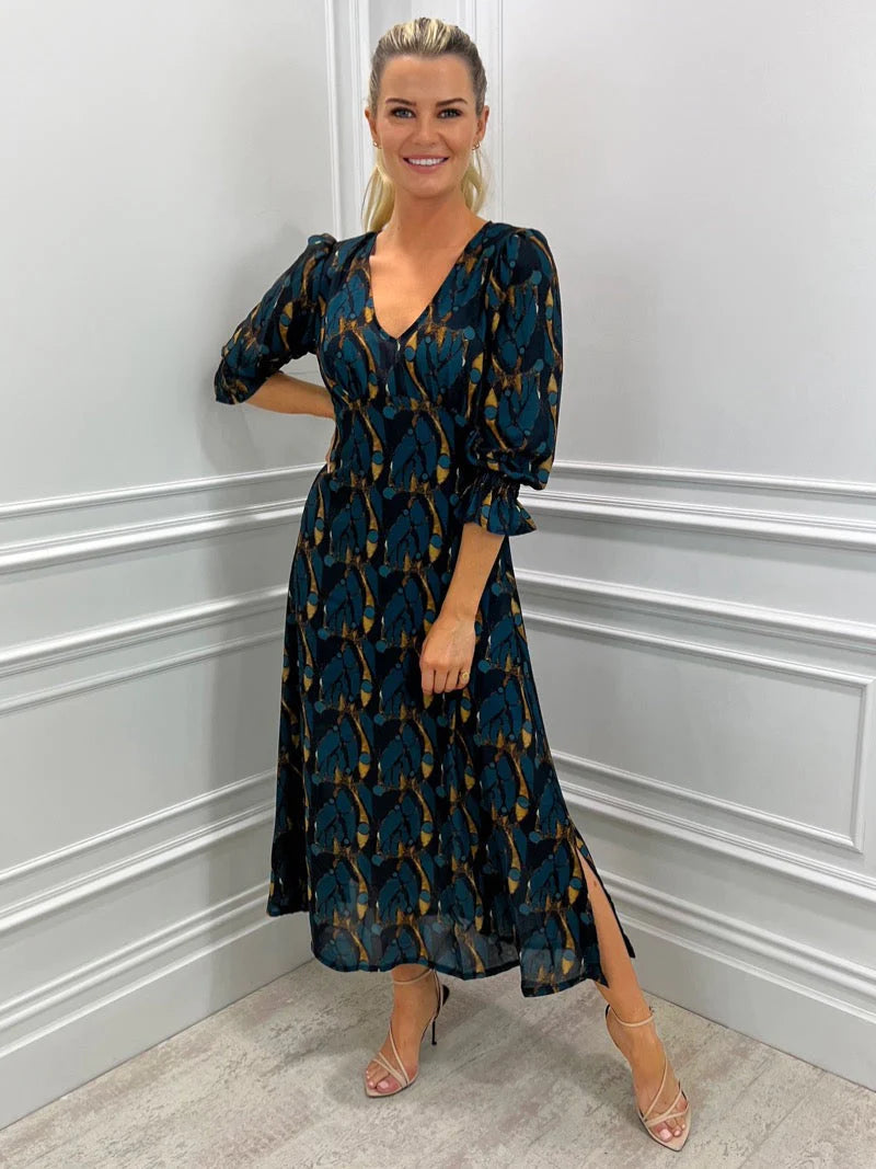 The newest addition to the Kate & Pippa collection, our Streasa dress is a must have for your autumn/winter wardrobe. A loose fit with a v neck make this dress a perfect figure flattering style, with a slit on the side for additional detail. Paired beautifully with heels for an occasion or boots for a more casual look.