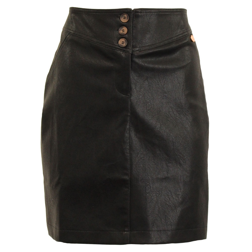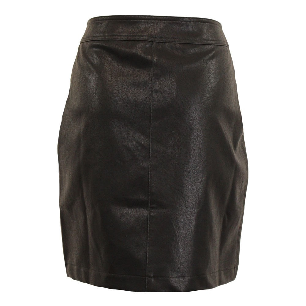 Cut to a versatile mini length, the SUSAN Leatherette Skirt has a distinctively luxurious feel. It's designed to sit high on your waist in a slim-fitting silhouette with a concealed zip and three button closure. It is fully lined and finished with two slant side pockets.