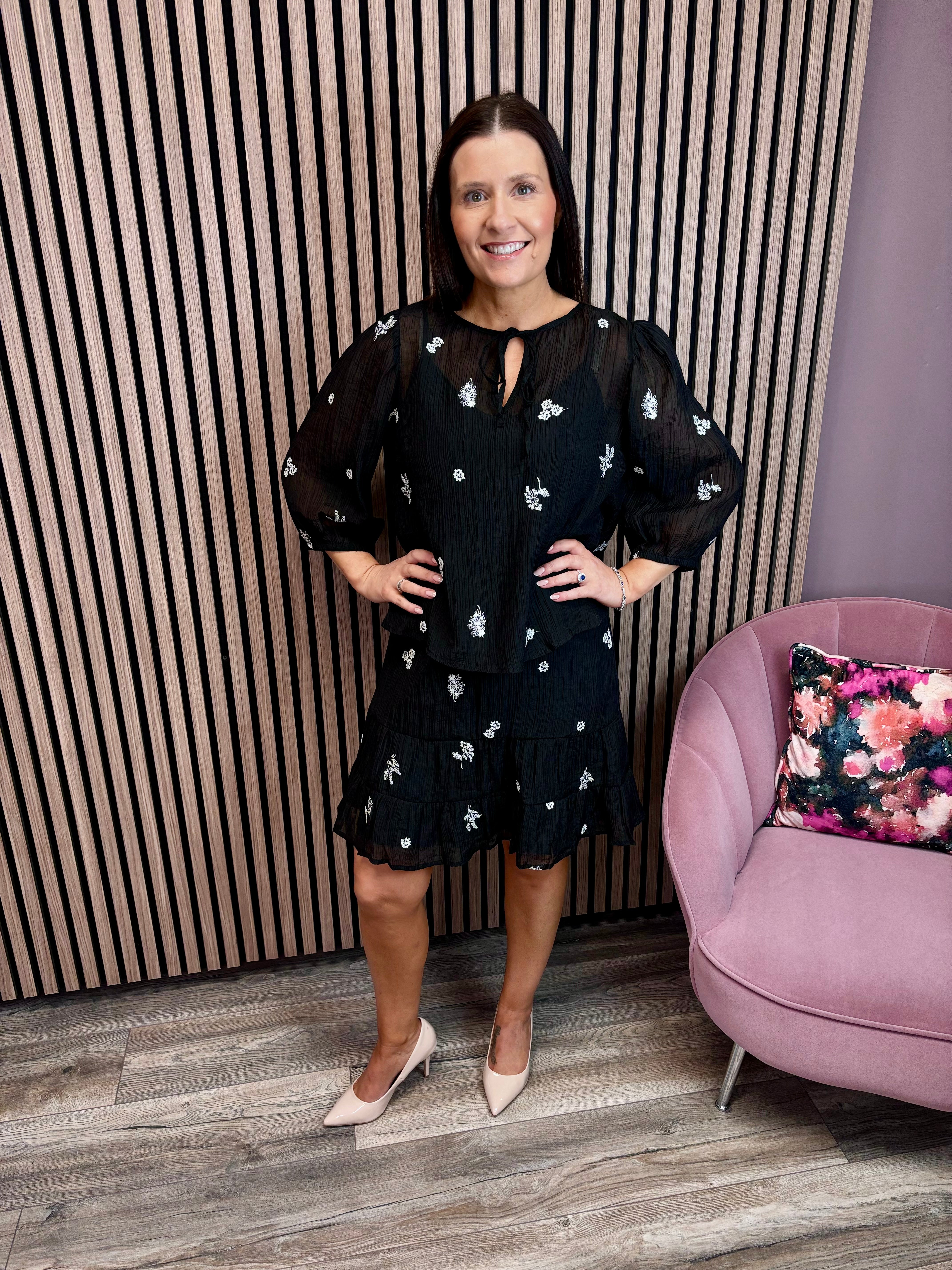 This flirty embroidered skirt is part of a cute matching set. Its dainty design showcases a high waist and a lovely flow, creating a regular fit that's chic and cozy.