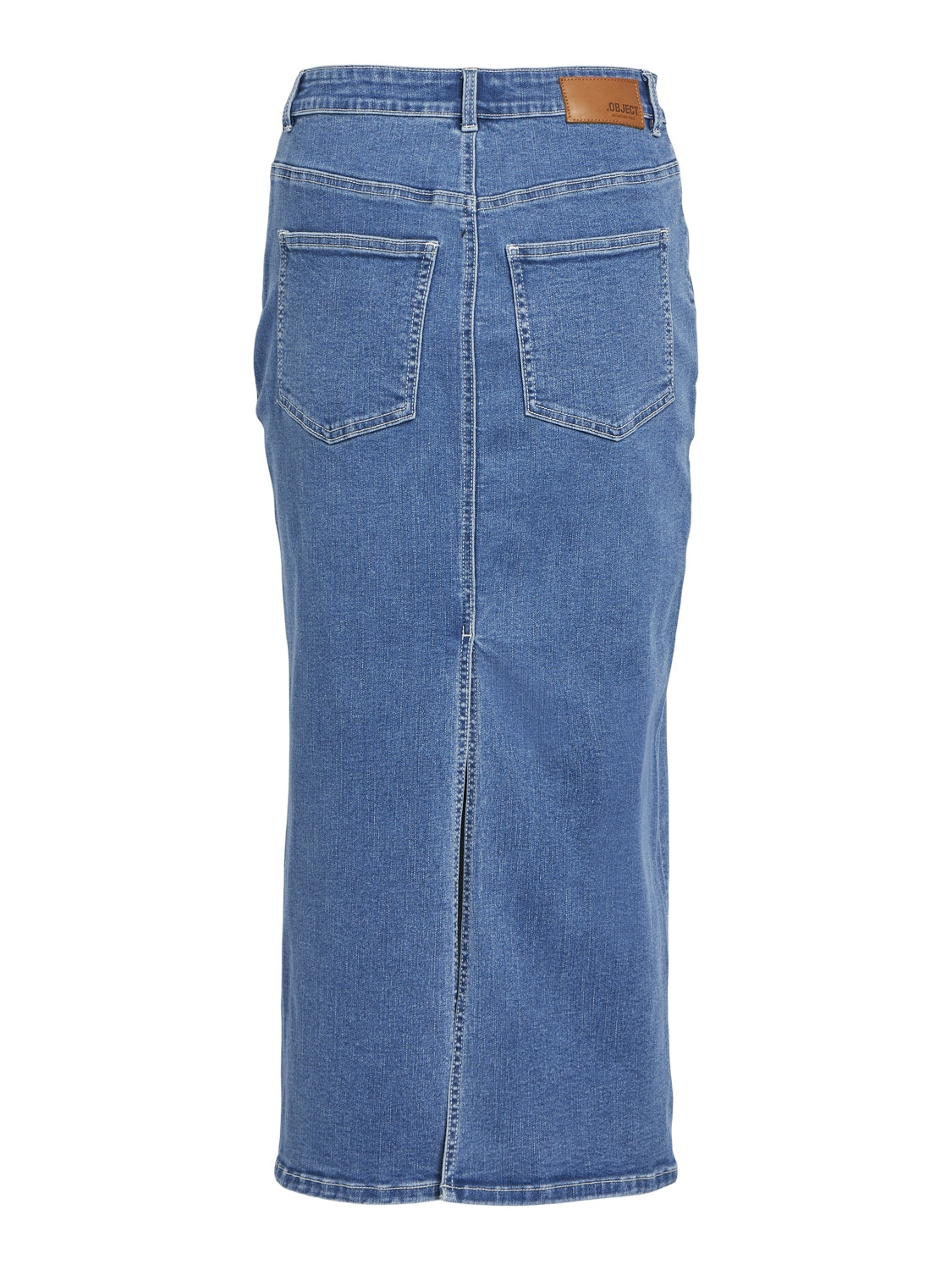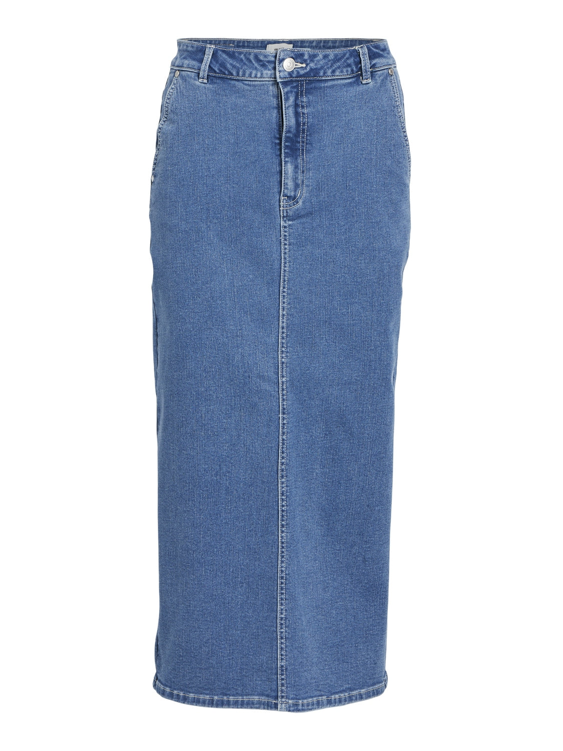 The Talia Midi Denim Skirt offers a high waisted fit, midi length and stretchy fabric for ultimate comfort. With side and back pockets, zip and button fastening, belt loops and a back centre slit, this skirt is both stylish and functional. Elevate your wardrobe with this must-have denim essential.