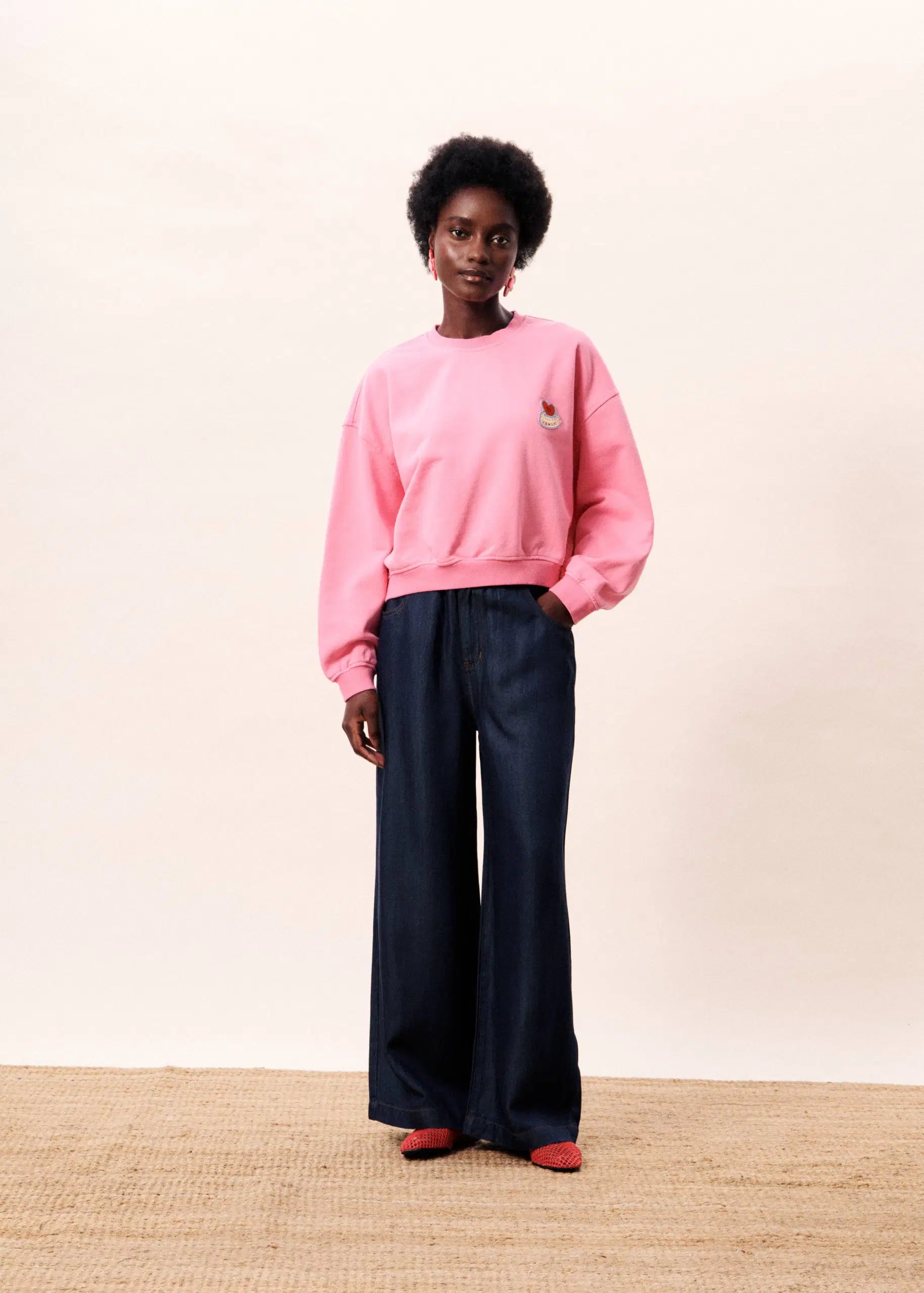 Spread joy in this vibrant pink sweatshirt featuring an adorable happy heart motif. The relaxed dropped shoulders and classic round neck create an effortlessly cool silhouette that's perfect for casual days. Bursting with personality, it's the ultimate feel-good piece for your wardrobe.