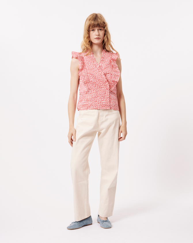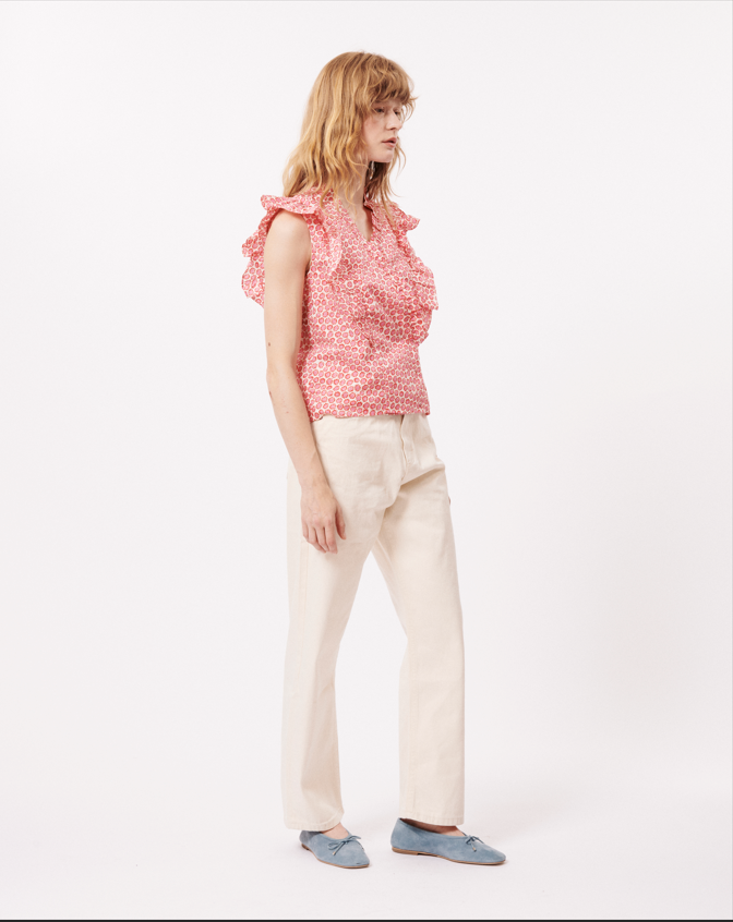The TAYA Sleeveless Top boasts a feminine design with ruffle details. Made from 100% cotton this top features a cross over front that is fastened with three buttons and an inner hidden clip for a secure fit. Elevate your wardrobe with this feminine and chic piece.