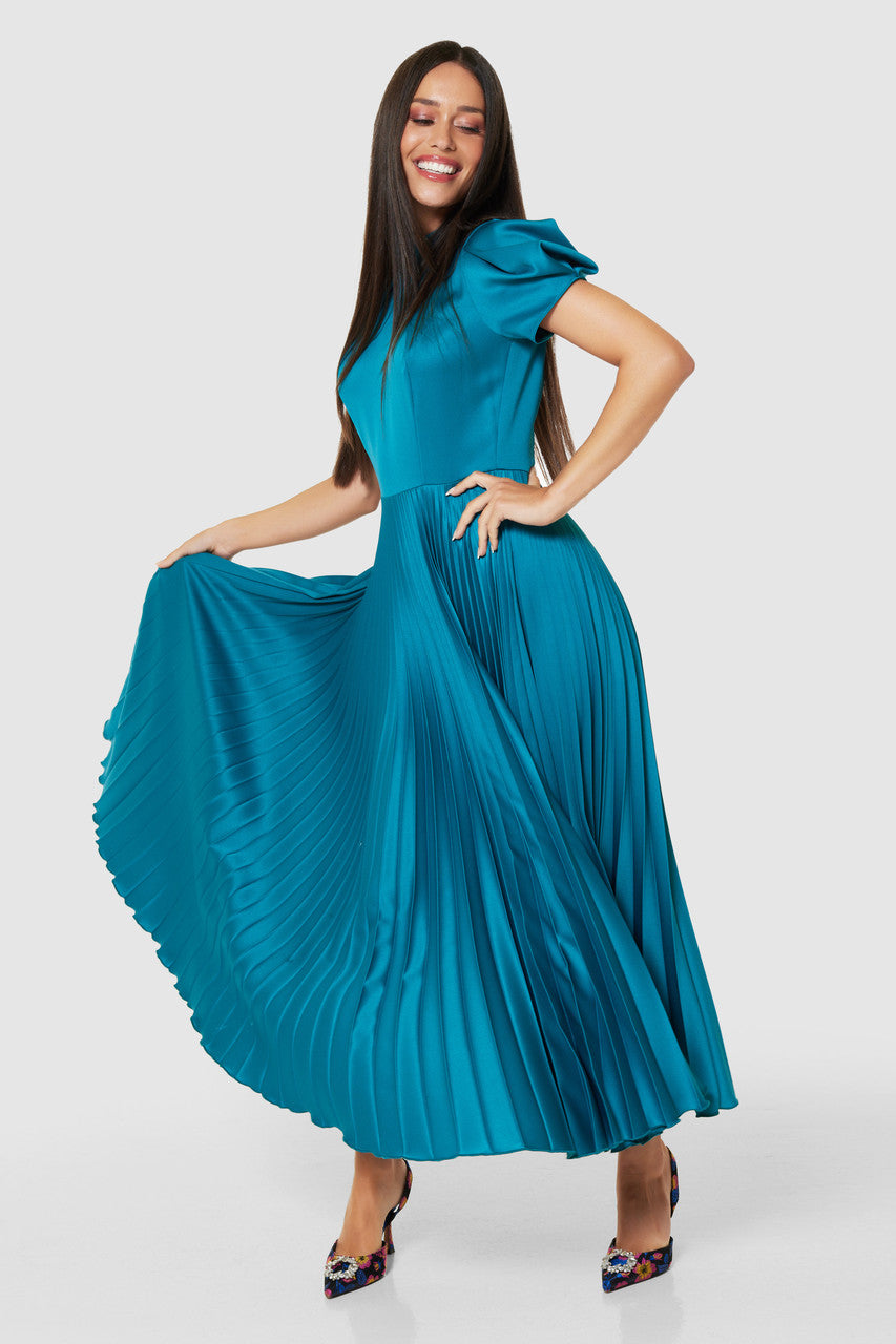 Indulge in the luxurious design of the Closet London pleated dress, a best-selling silhouette that exudes elegance and sophistication. The intricate pleating at the neckline and short sleeves, along with the refined narrow collar, elevate this dress to the epitome of refined style.