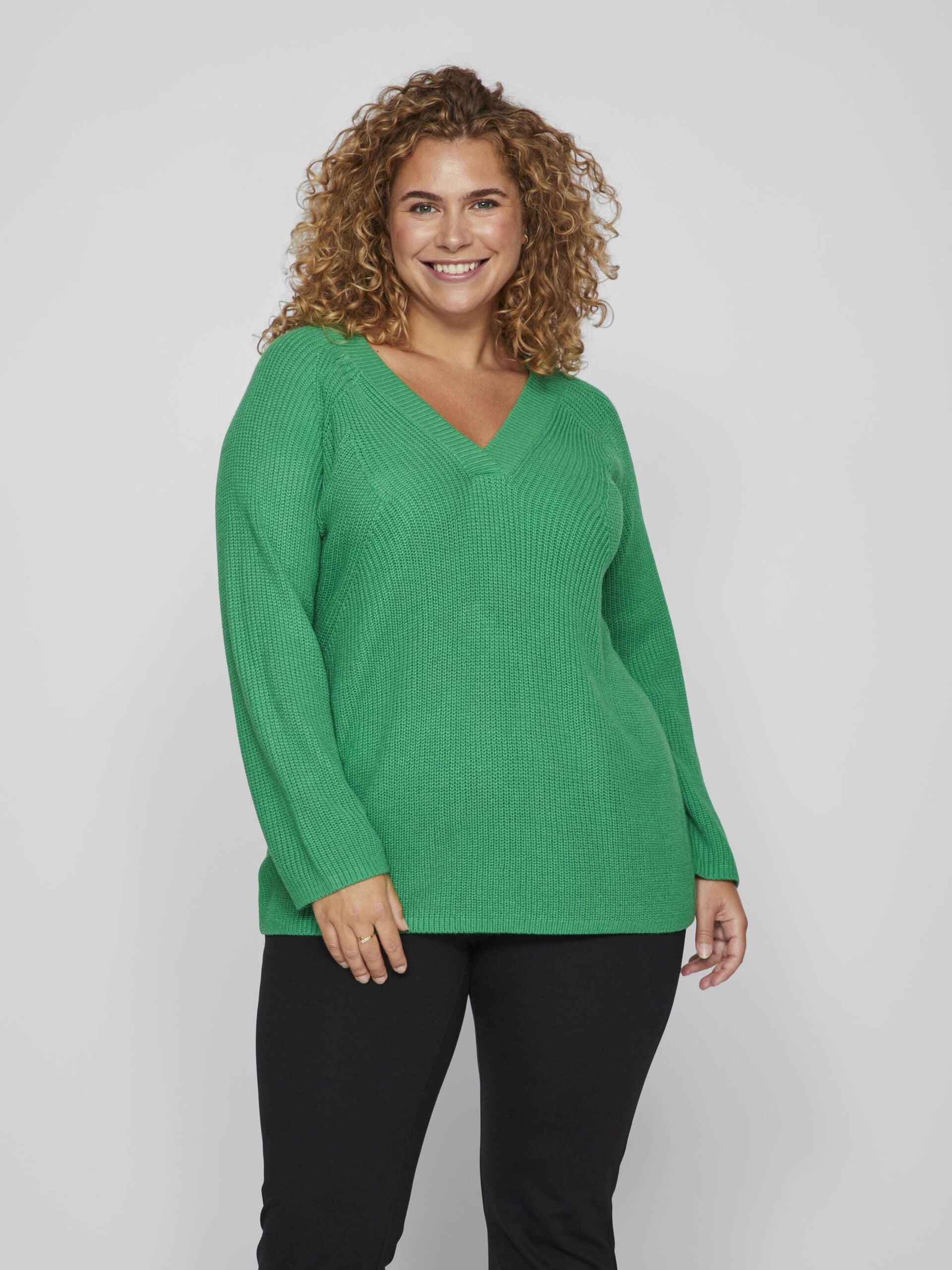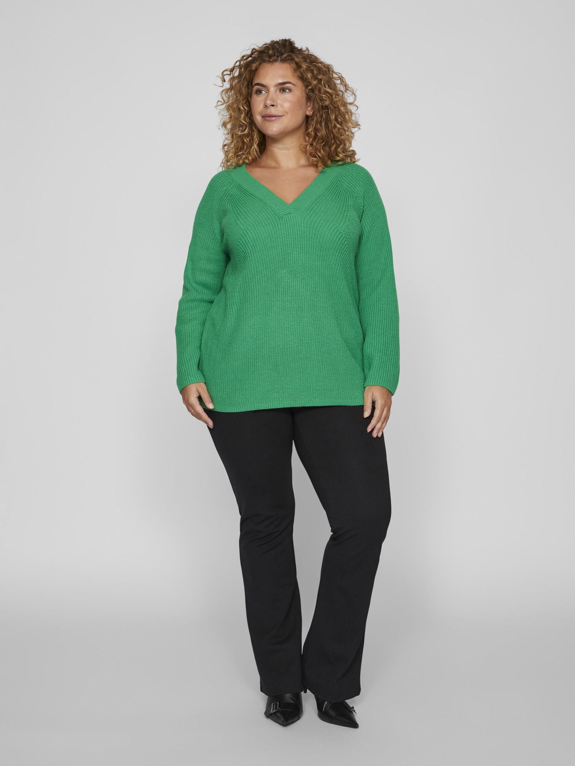 A simple V-Neck knitted top by Vila Evoked with long sleeves and ribbed edges is wardrobe is essential. Style up with crisp shirt and your favourite trousers. This go-to top is made exclusively for the curved body