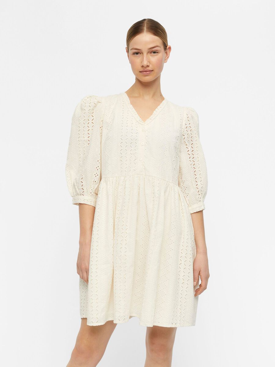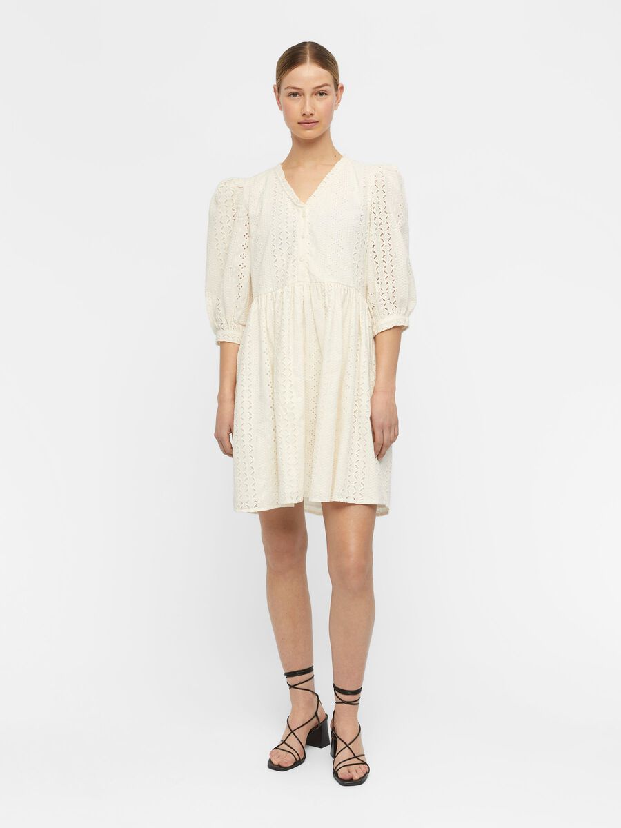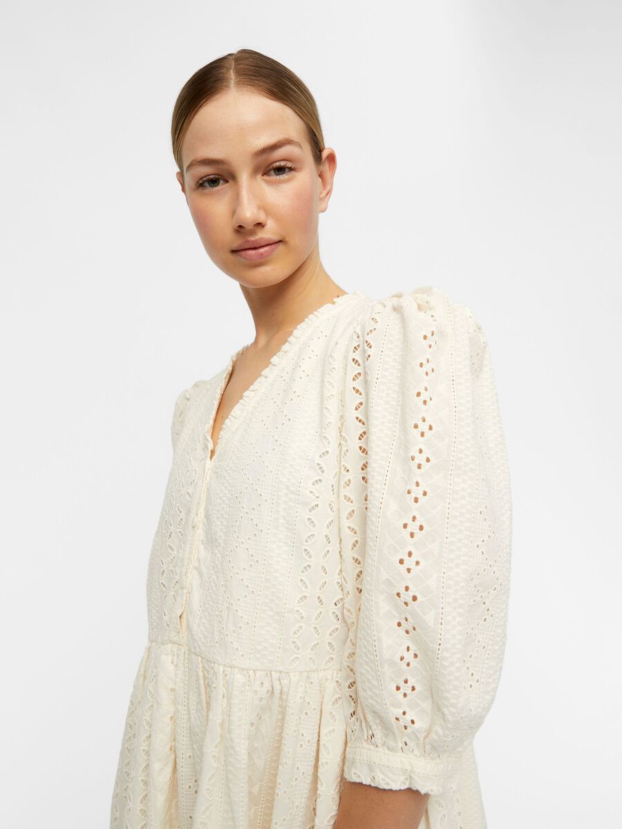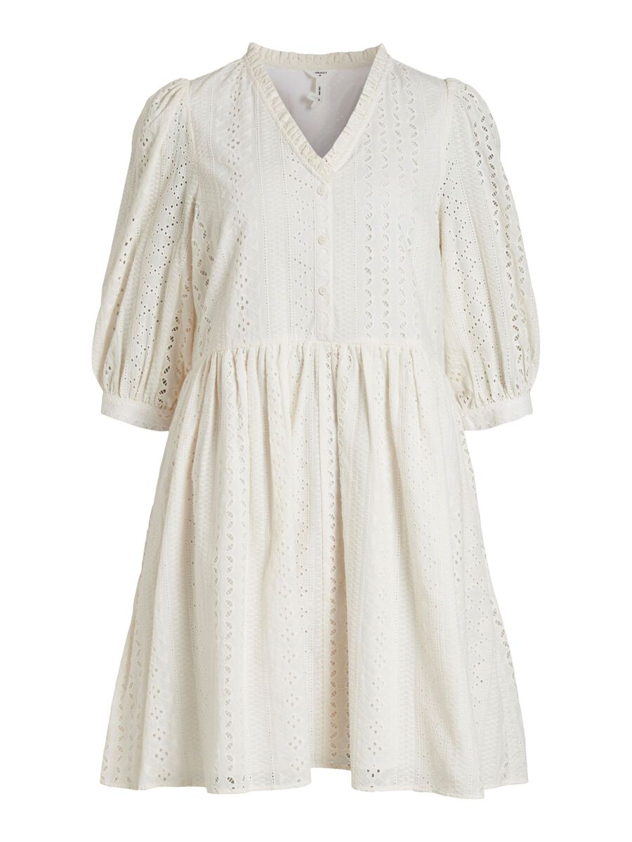 This fabulous Violetta Midi Dress by Object is a wardrobe must have! Featuring3/4 length sleeves v-neckline, midi length and open stitching. A timeless piece you will wear over and over again!