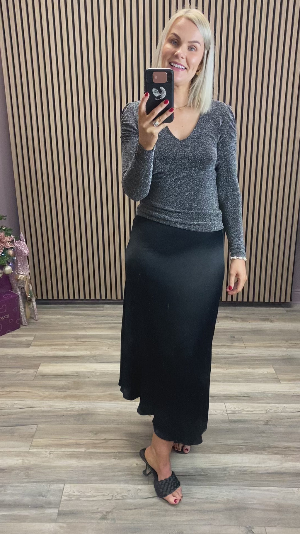 VISHA V-NECK TOP (BLACK/SILVER)