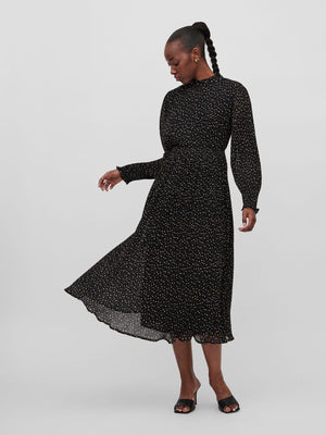 How cute is this long sleeved, midi dress with a pleated skirt. Featuring a keyhole closure at back, elasticated waist and elasticated cuffs.