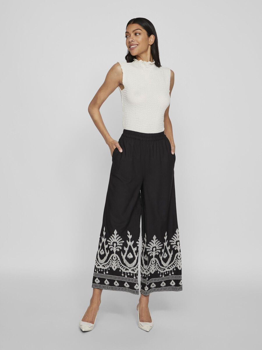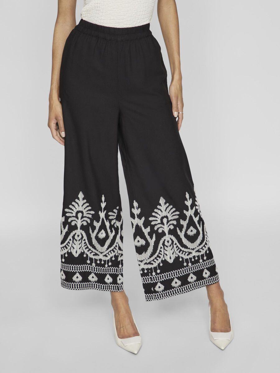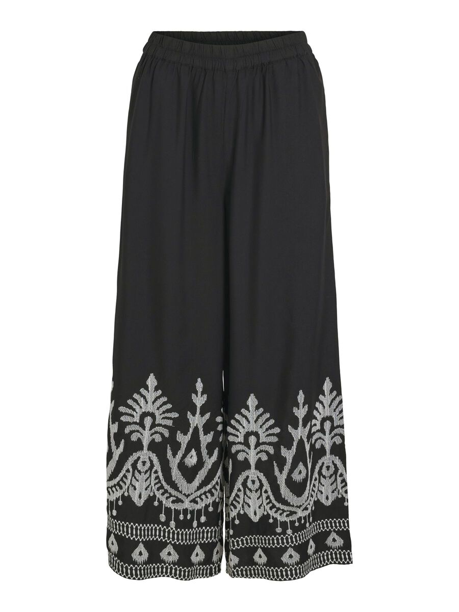 The Winnie Trousers feature a cropped wide leg design with embroidered detailing. These trousers are finished with an elasticated waistband and side pockets for all day comfort. A must-have for the modern fashionista.